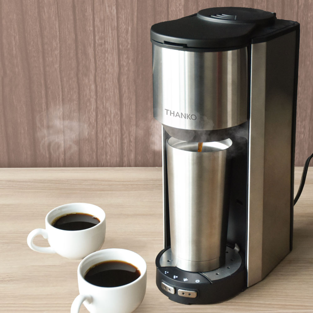 コーヒー豆から挽きたての本格的なコーヒーを全自動で淹れられるコーヒーメーカーです。ミル機能を搭載しており、豆からでも粉からでも使用可能。細挽きと粗挽きの2種類の挽き方が選べ、付属のタンブラーだけでなくマグカップにも対応しています。