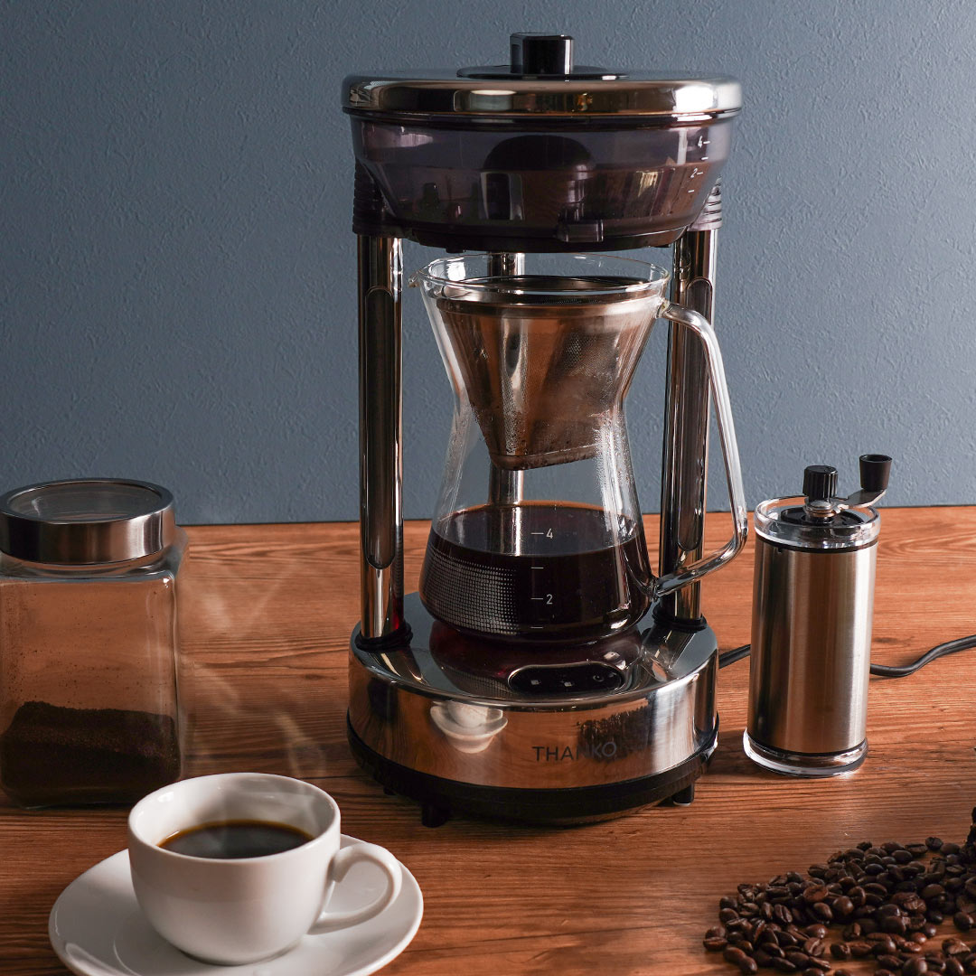 バリスタが手で淹れたような本格的なハンドドリップコーヒーを、ボタン一つで楽しめるコーヒーメーカーです。93〜96℃のお湯を6つの穴から注ぎ、温度を細かく制御することで、安定した味わいを実現します。抽出後は70℃で保温する機能も備えています。