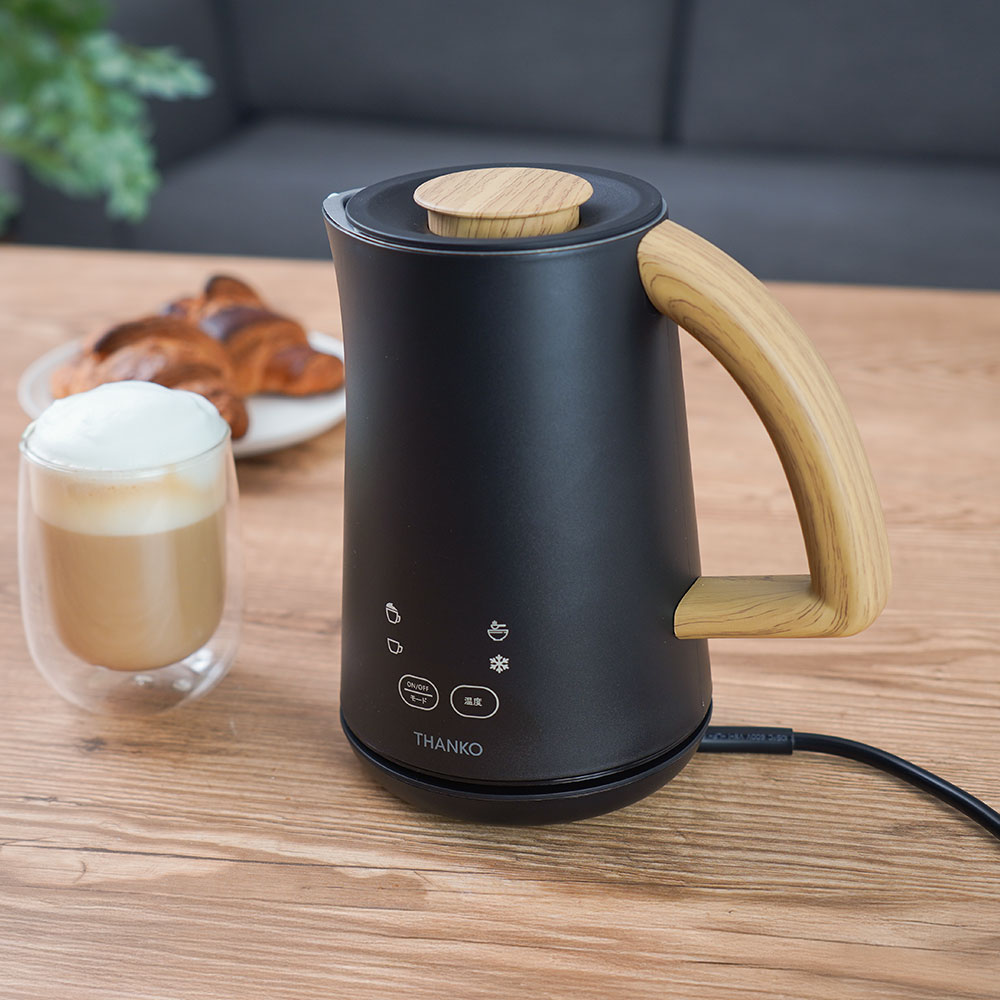 ボタンひとつでまるでカフェのような、きめ細かくふわふわのミルクが作れる全自動のミルク泡立て器です。ホット・アイス両方に対応しており、泡立てだけでなく加熱や撹拌もできるため、ホットチョコレートなども簡単に作れます。