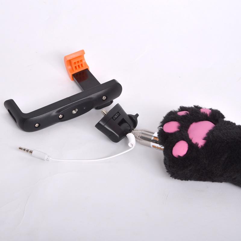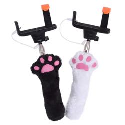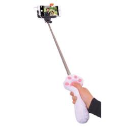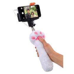 猫の手の自撮り棒!?いつでも、モフモフな猫の手を握って、プニプニ肉球を押してカメラ撮影ができる、有線の自撮り棒