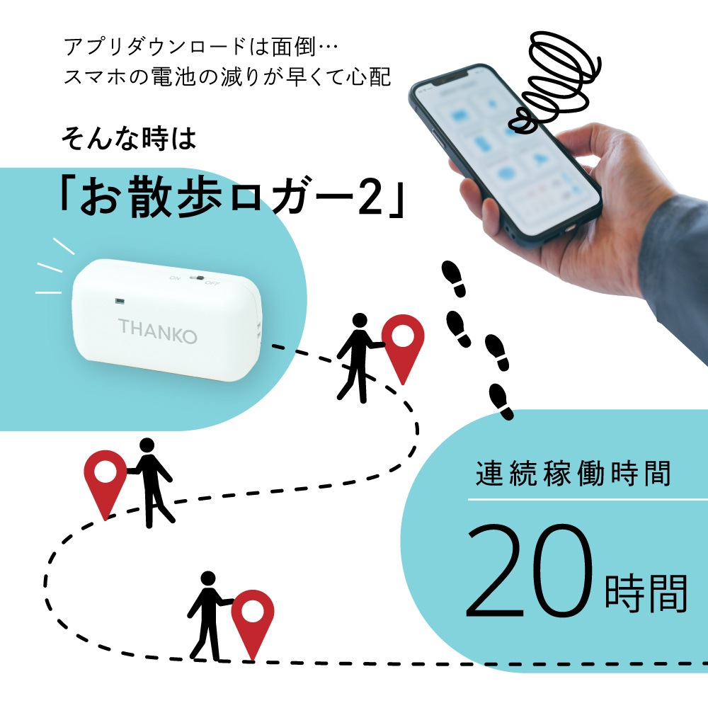 電源ONして持ち歩くだけ。お散歩ルートを記録して可視化できます!