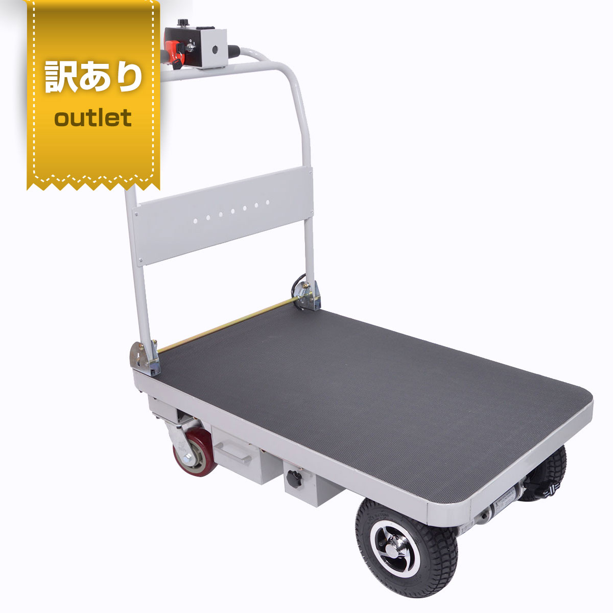 台車の前輪は、厚い丈夫なゴムタイヤで、この前輪部に電動アシストモーターがついています。