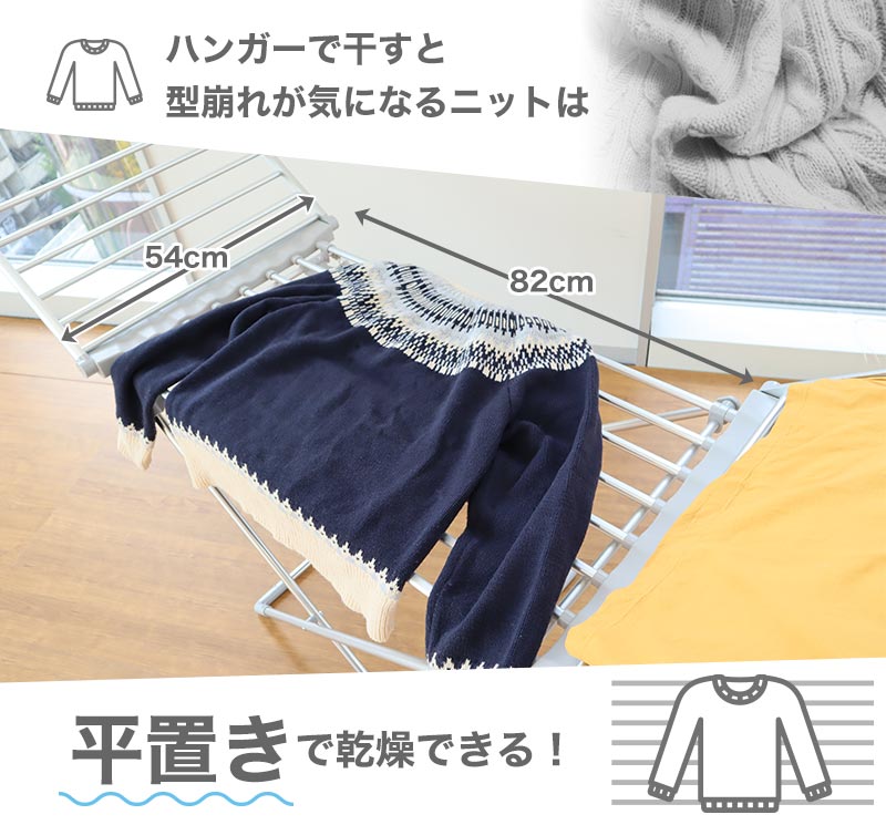 ハンガーにかけると型崩れが心配なセーターなどは、平置きで乾燥もできます。