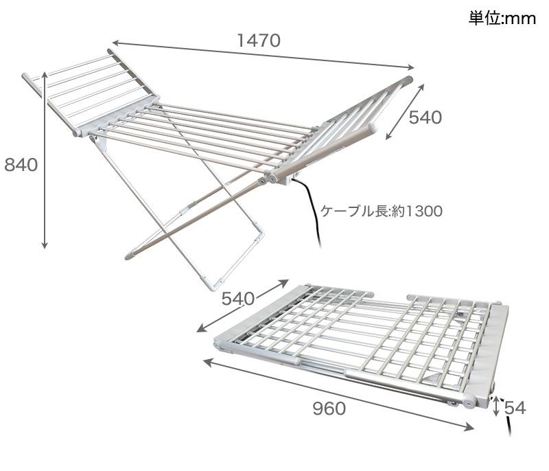 | サイズ | 使用時:幅1470×高さ840×奥行540(mm) 折りたたみ時:幅960×高さ54×奥行540(mm) |