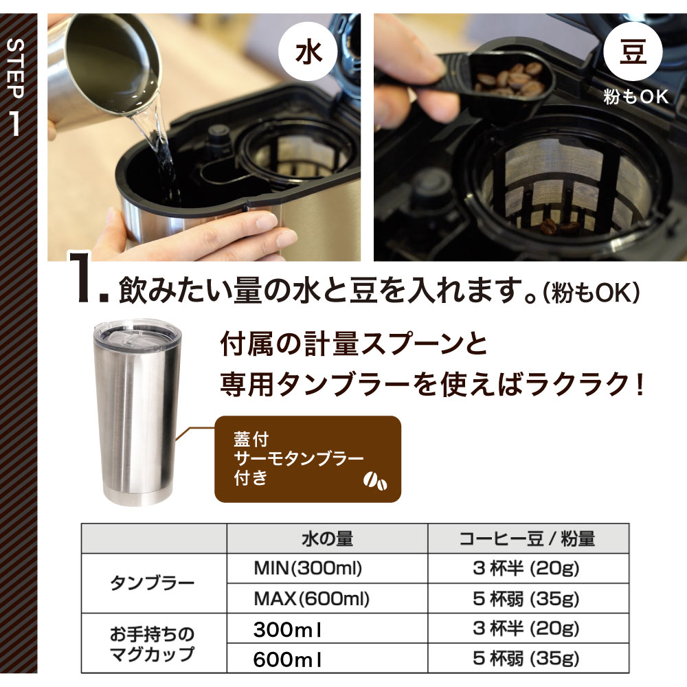 | 定格消費電力 | コーヒーメーカー:900W コーヒーミル:200W |
