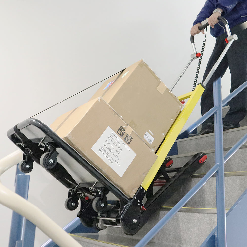 『階段』をボタン1つで昇り降りできる【電動階段のぼれる台車】。