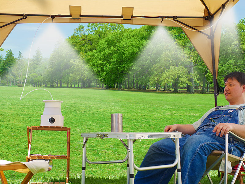 アウトドアや庭先、ベランダなど好きな場所でミストシャワーを出せば気化熱効果で涼しくなります。
