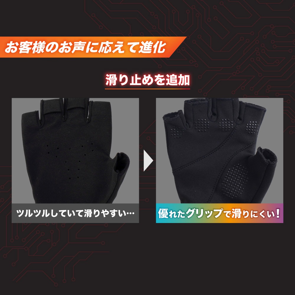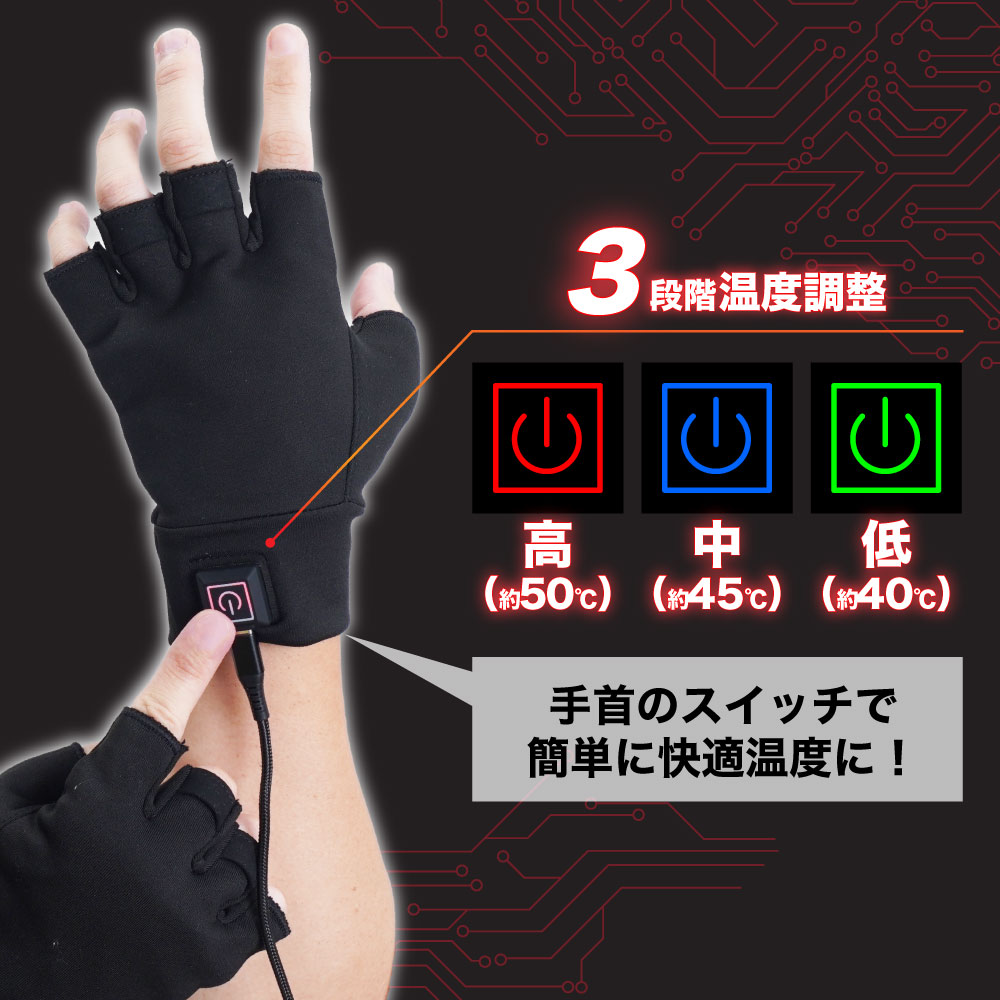 ゲーミングてぽっかは、操作性抜群なストレッチ素材の指なし手袋に、ヒーターを搭載させました。