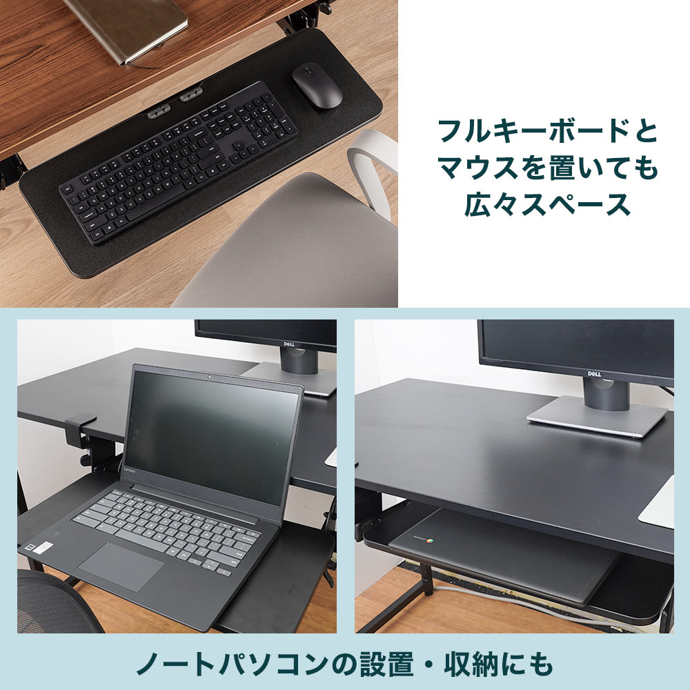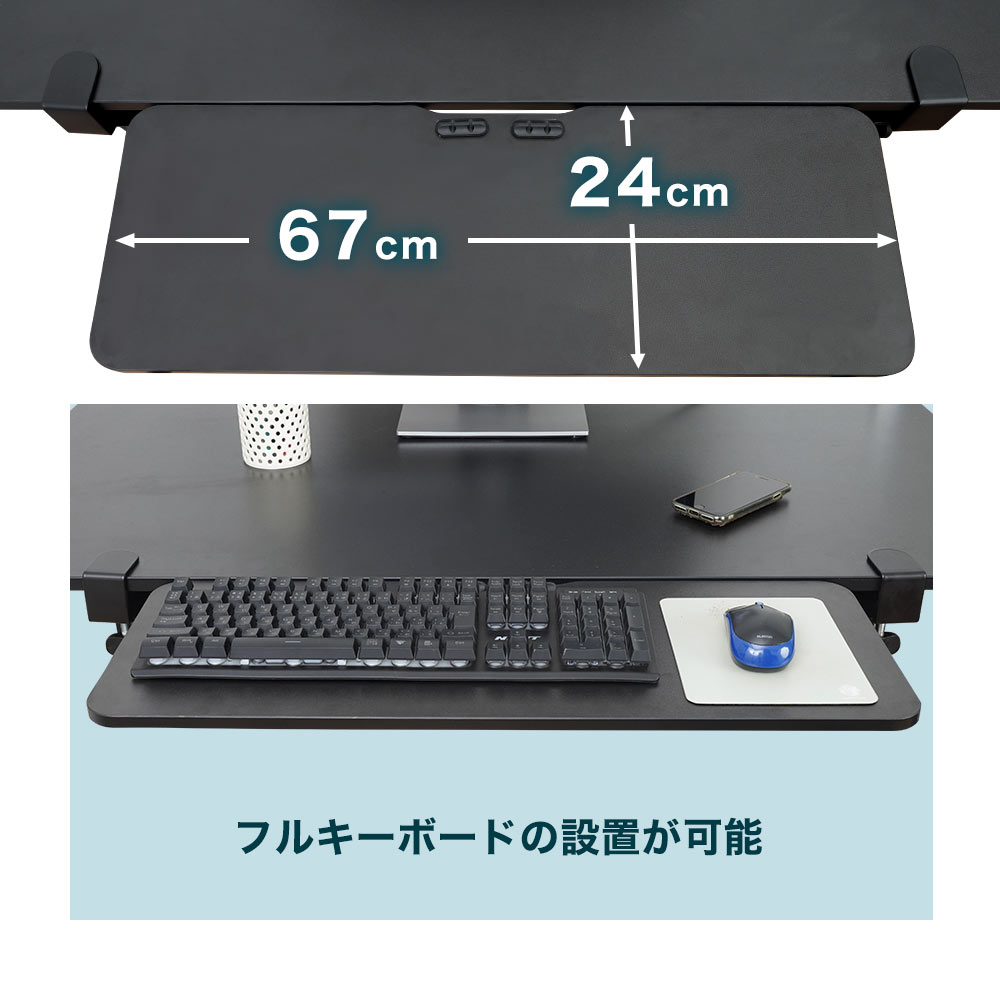 天板サイズが約67cmと広いので、フルキーボードとマウスを置くことができます。