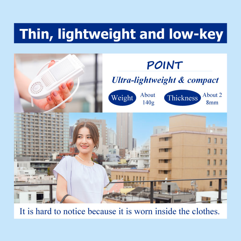 ※If the exhaust and intake vents are blocked, heat will not be dissipated sufficiently, and the unit may become hot and not function properly. Please be careful when using the product, such as by tying your hair up or wearing loose clothing. ※This product is not a medical device and cannot be used for medical procedures such as cooling affected areas. |