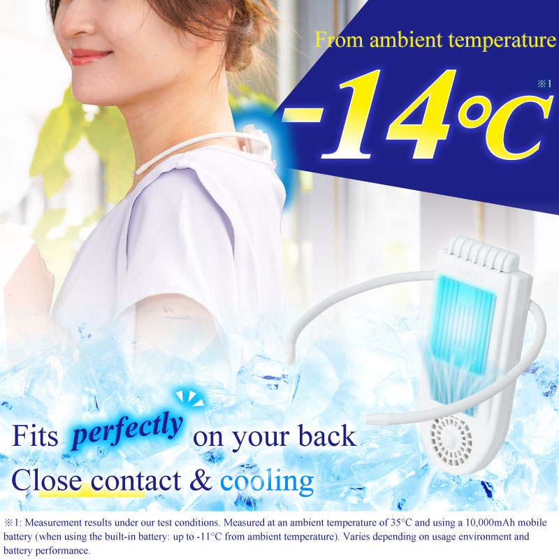 | Cooling Plate Temperature | When using a mobile battery (10000mAh): Up to -14℃ lower than the ambient temperature When using the built-in battery: -11°C below ambient temperature ※Measurement results under our company's test conditions. Measured at an ambient temperature of 35°C. Results may vary depending on the usage environment and the performance of the mobile battery (sold separately). |