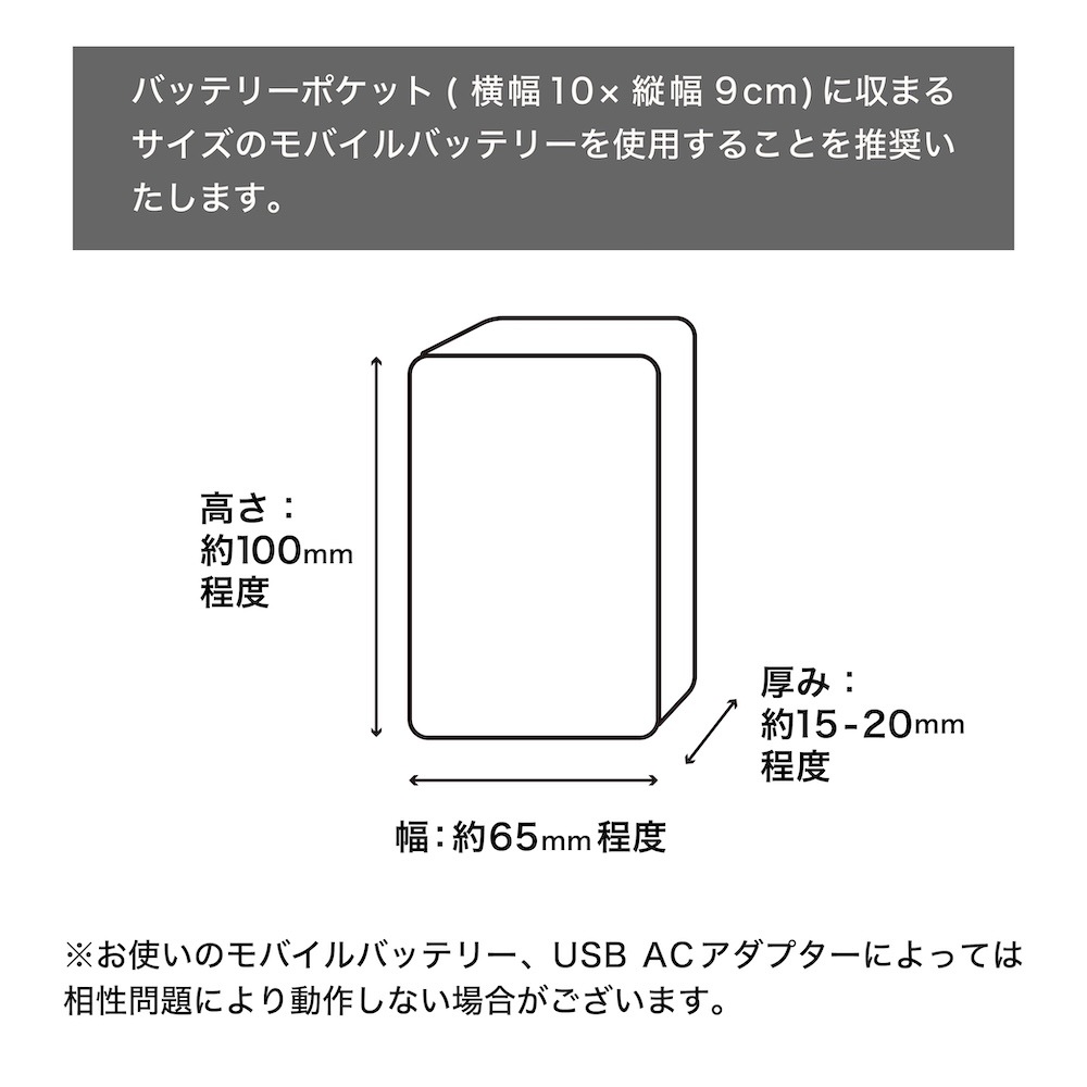 | バッテリーポケットサイズ | 横幅10×縦幅9(cm) |