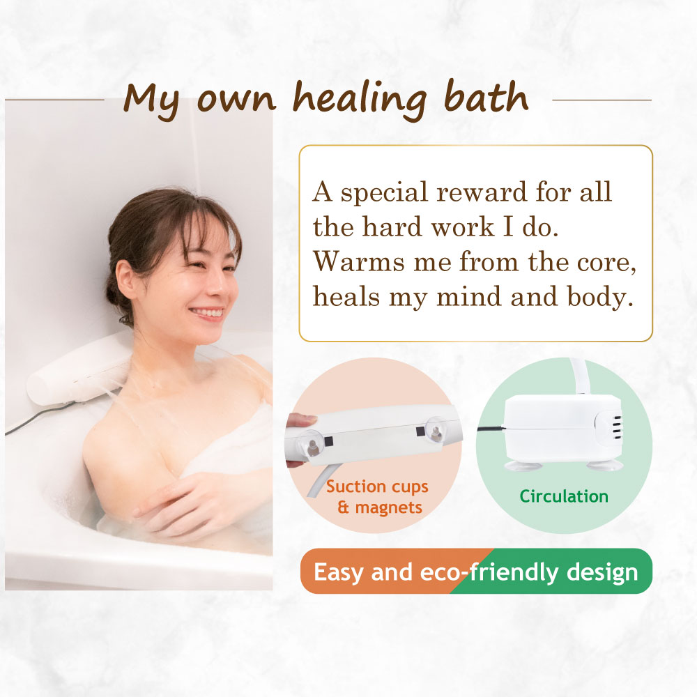 "Gokuraku Kata-yu" is a shoulder-relaxing bath system that can be easily retrofitted to your bathtub with no construction required.
