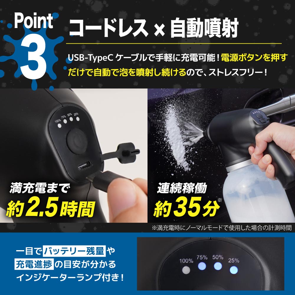 洗車で大活躍、コードレスタイプのフォームガンが登場!
