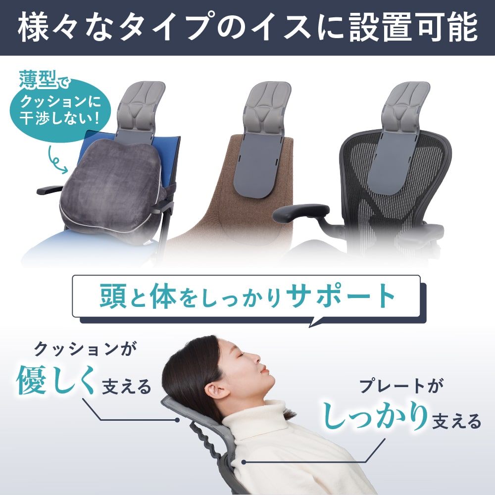 首こりを感じたとき、ちょっと休憩したいときにサッと設置できるお手軽ヘッドレストです。