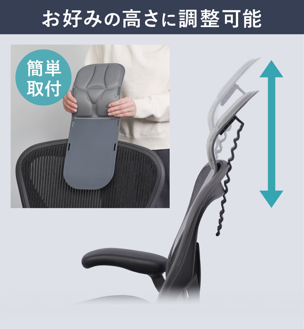 そんなとき、このヘッドレストを普段使っているイスに挟むだけで、ヘッドレストがしっかりと首を支えてくれて気持ちよくひと休みすることができます。