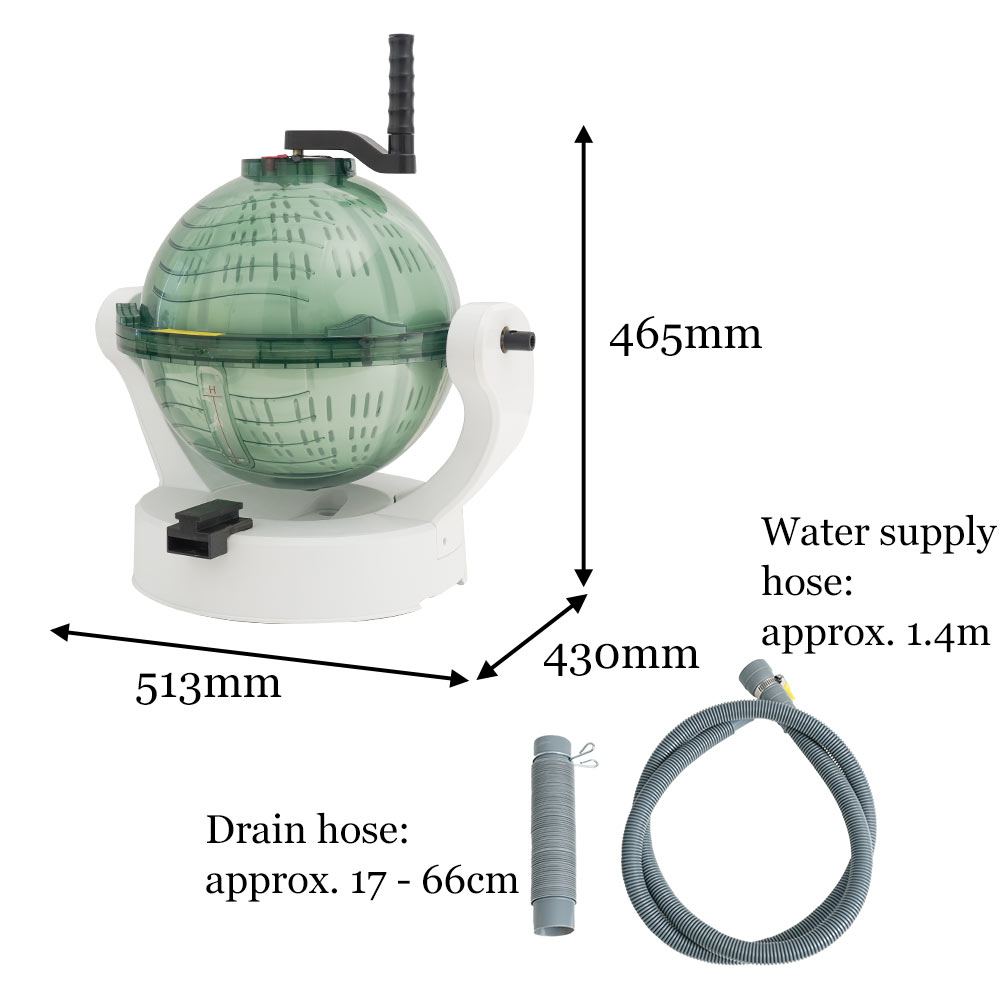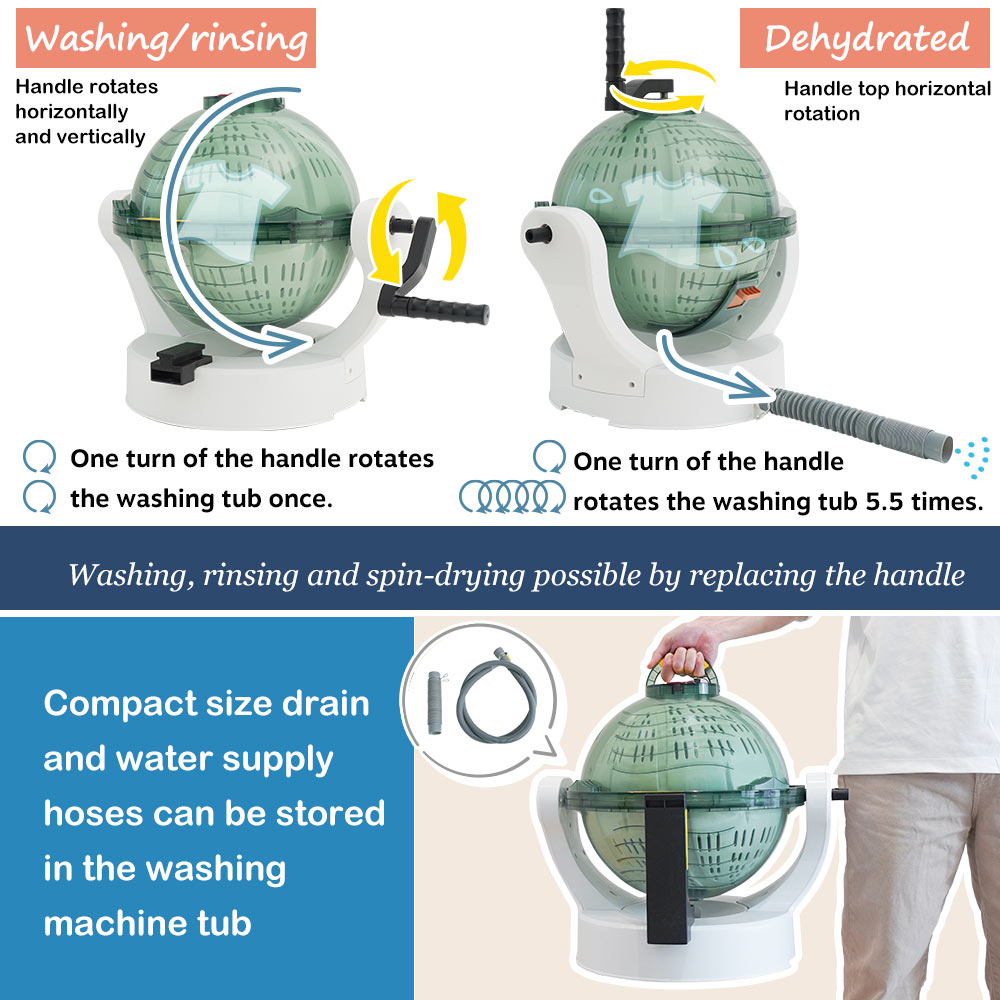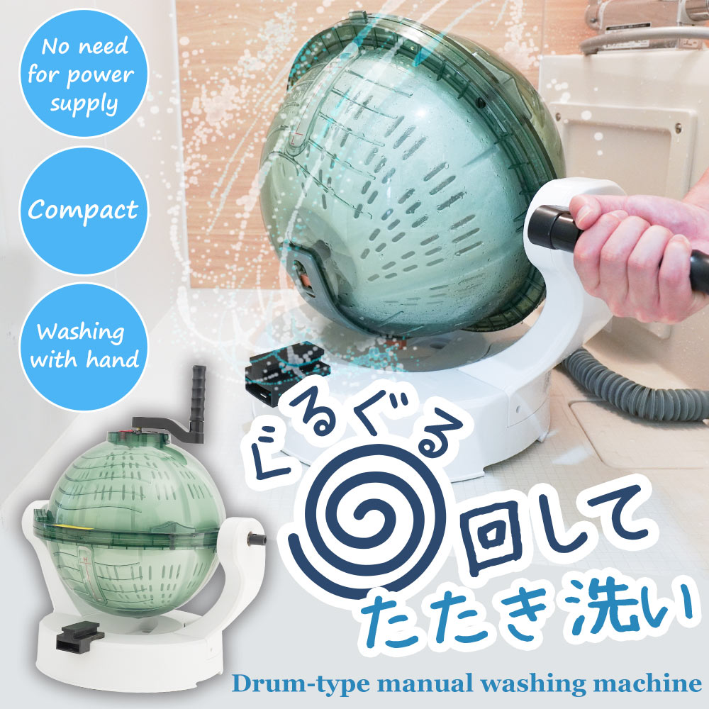 Guru Guru Spinning Tub Ball" is a small, manual washing machine that does not require a power source.