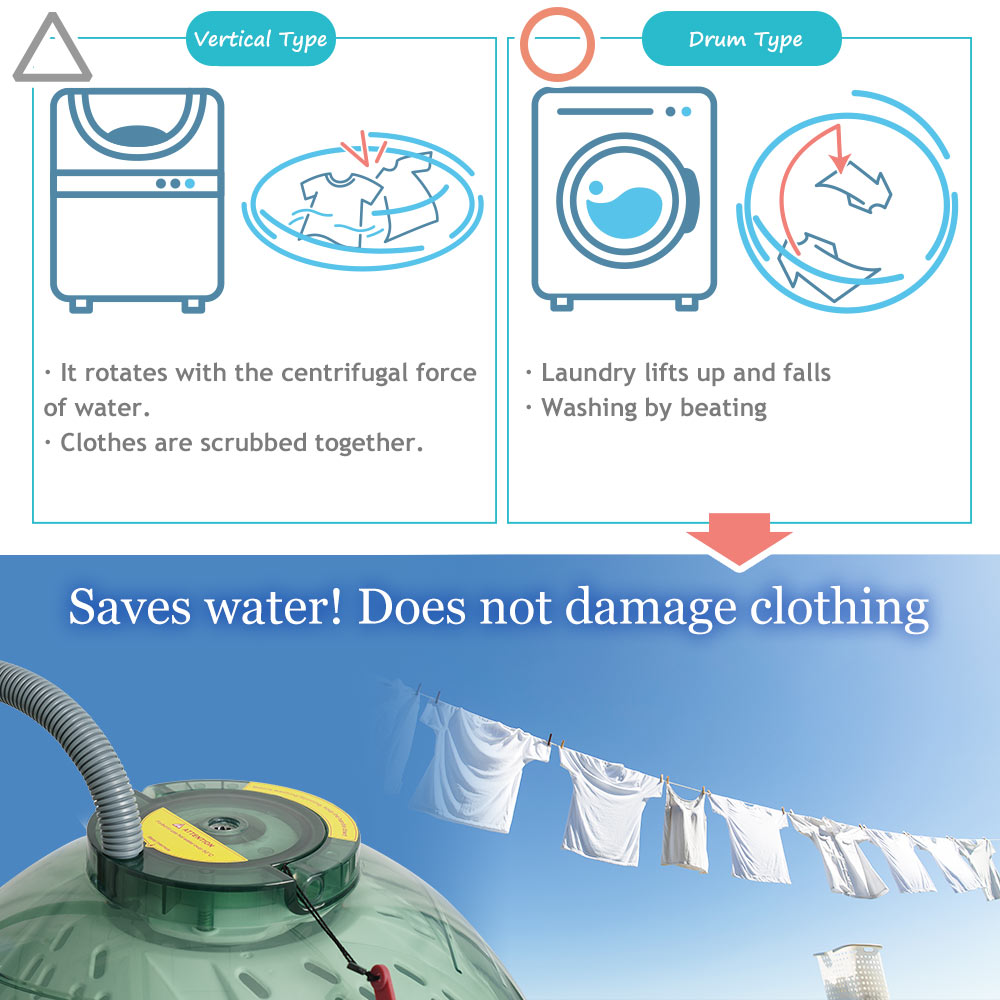 It is a drum-type washing machine that is gentle on clothes, even though it is turned by hand.