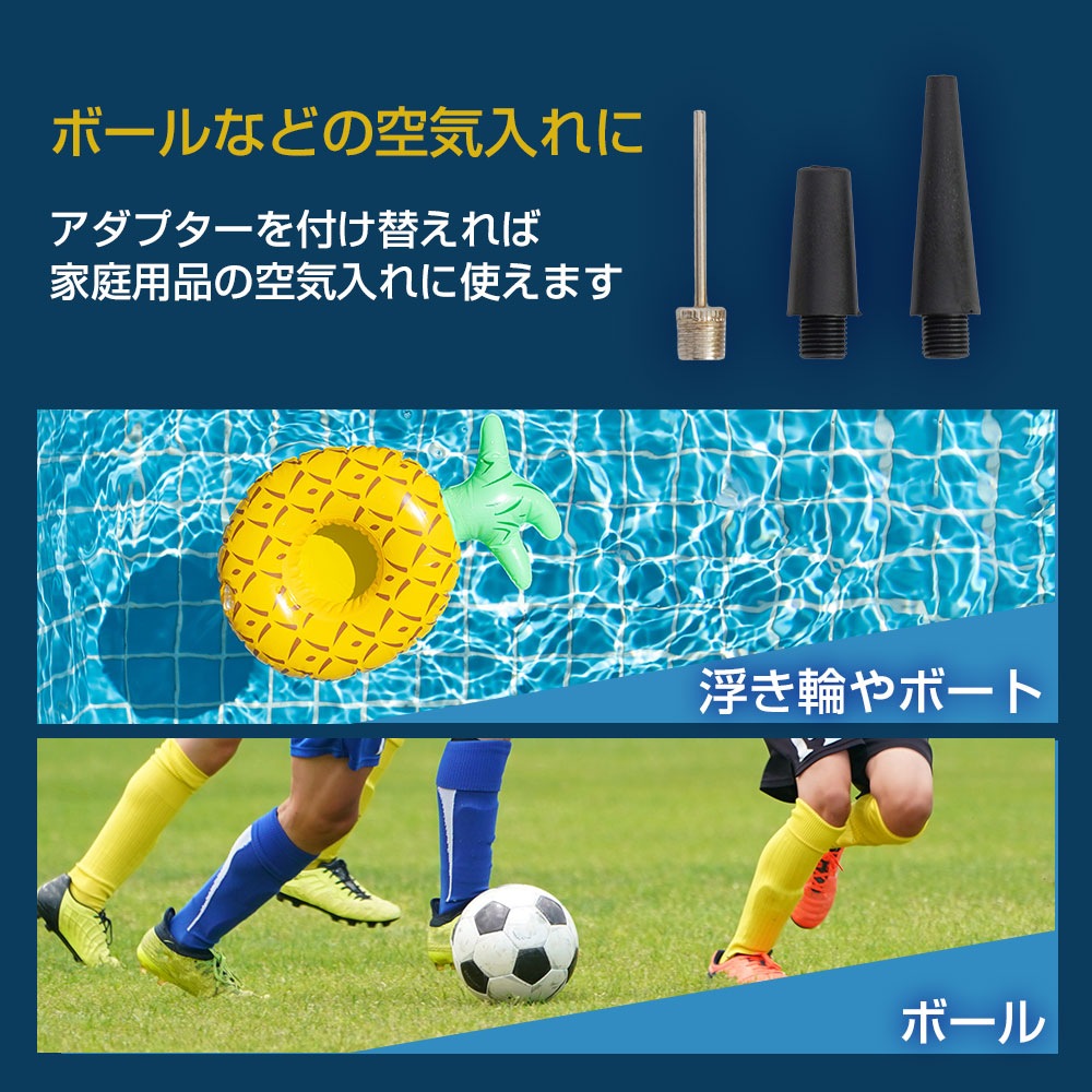 | セット内容 | 本体、USB typeCケーブル、風船用アダプター2個、自転車用アダプター(英式)、ボール用アダプター、保存用袋、日本語取扱説明書 |