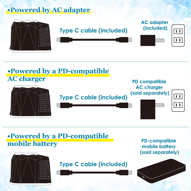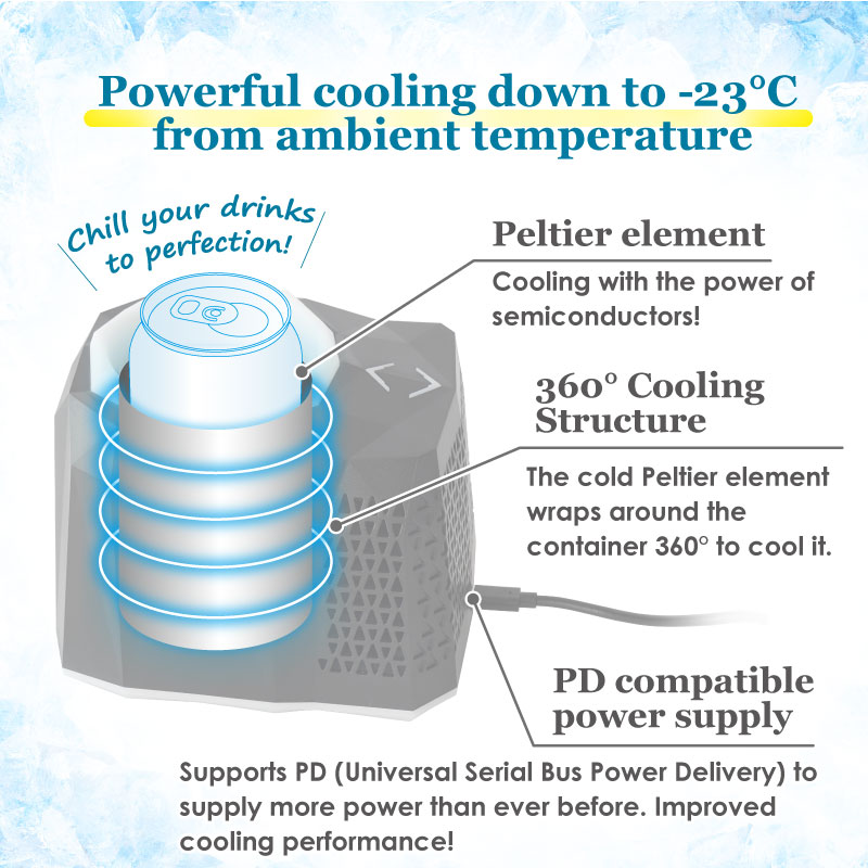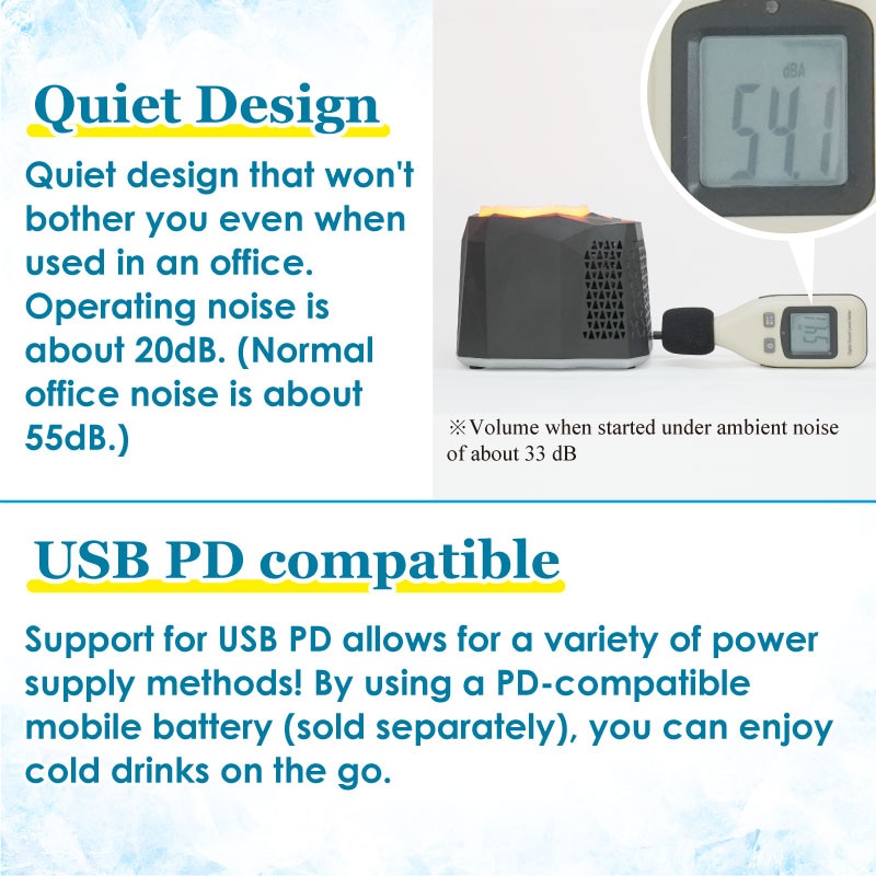 It can also be powered by a PD-compatible mobile battery, so you can enjoy ice-cold drinks at home or on the go!