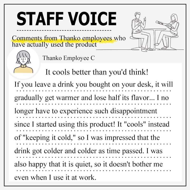 Because no ice is used, the drink does not get diluted and you can enjoy a cold drink for a long time.