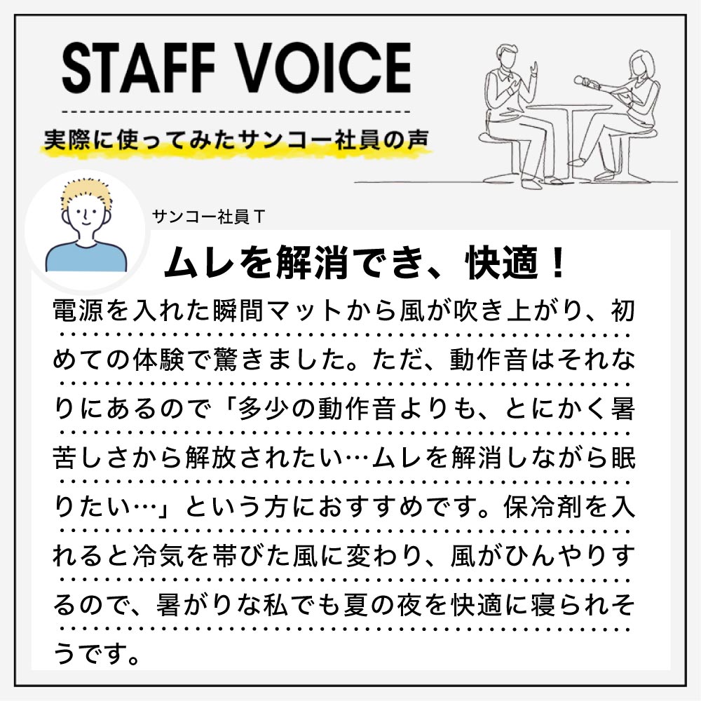 冷気をまとった風がマット内から吹き上げてくるので、涼しさがグッと高まります!