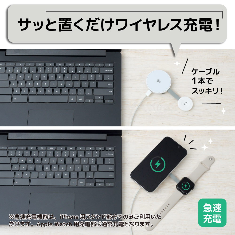※急速充電機能は、iPhone用スタンド部分でのみご利用いただけます。Apple Watch用充電部は通常充電となります。