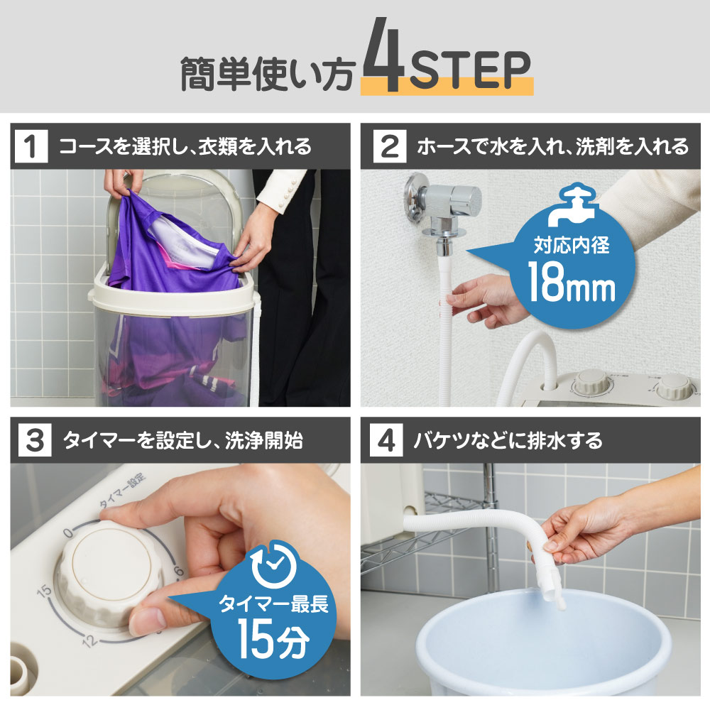 ※商品写真はできる限り実物の色に近づけるよう徹底しておりますが、 お使いのモニター設定、お部屋の照明等により実際の商品と色味が異なる場合がございます。 ※記載されている物以外は付属いたしません。 ※洗濯槽に50度以上の水を注がないでください。 ※水の量が多すぎると衣類が蓋を押し上げてしまう事がありますので、その際は水の量を減らしてご利用ください。 ※本製品には脱水機能はございません。 ※その他マニュアルのご注意事項も必ずご注意ください。 |