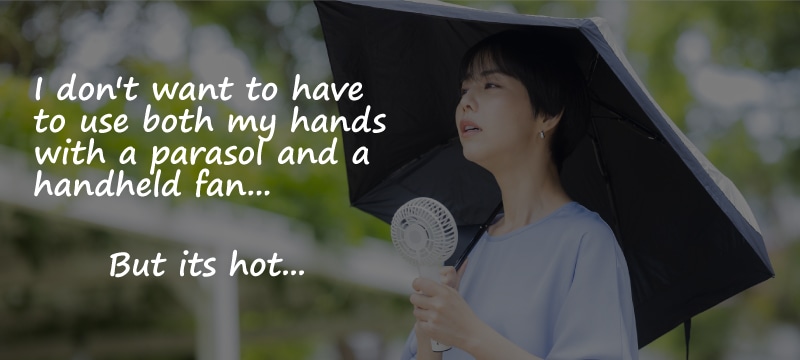 You want to protect yourself from the sun with a parasol, but at the same time you want to cool off with a fan.