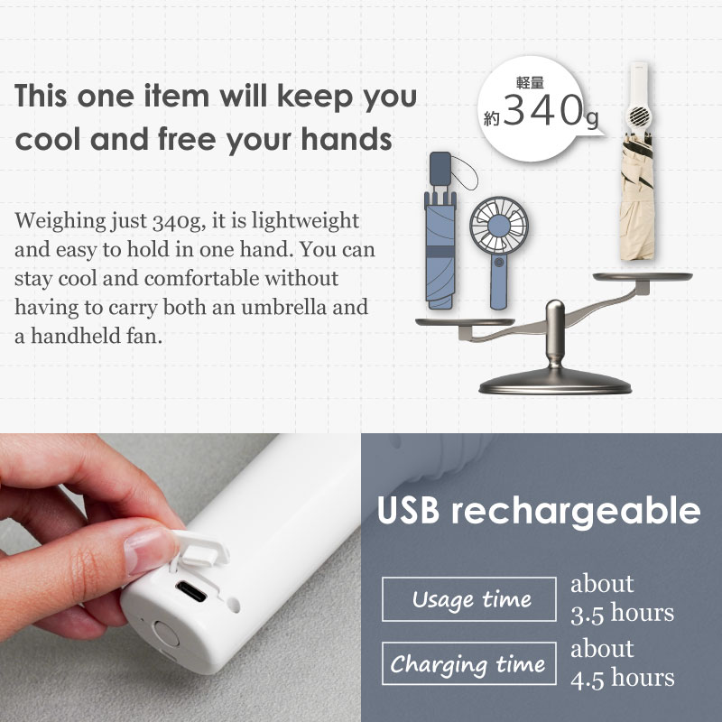 What's more, it's significantly lighter than carrying both a folding umbrella and a handheld fan!