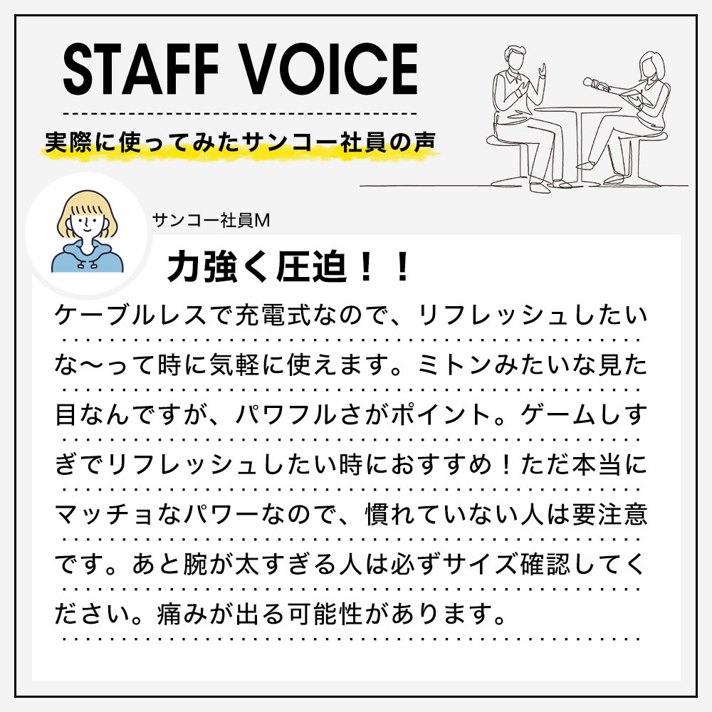 そんな時は空気圧でぎゅーっと圧迫と解放を繰り返す、空気圧がマッチョパワー「スッキリハンドギア」。