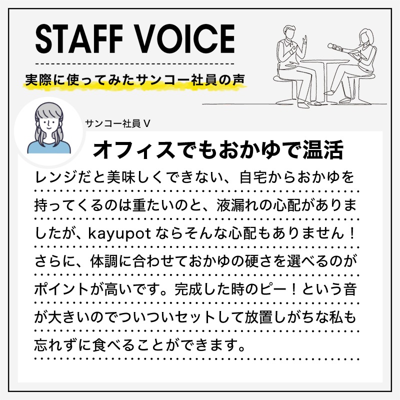 複雑な操作は一切なし!どなたでも簡単・お手軽におかゆを作ることができる、持ち運びできるおかゆクッカー「KayuPot」が登場。