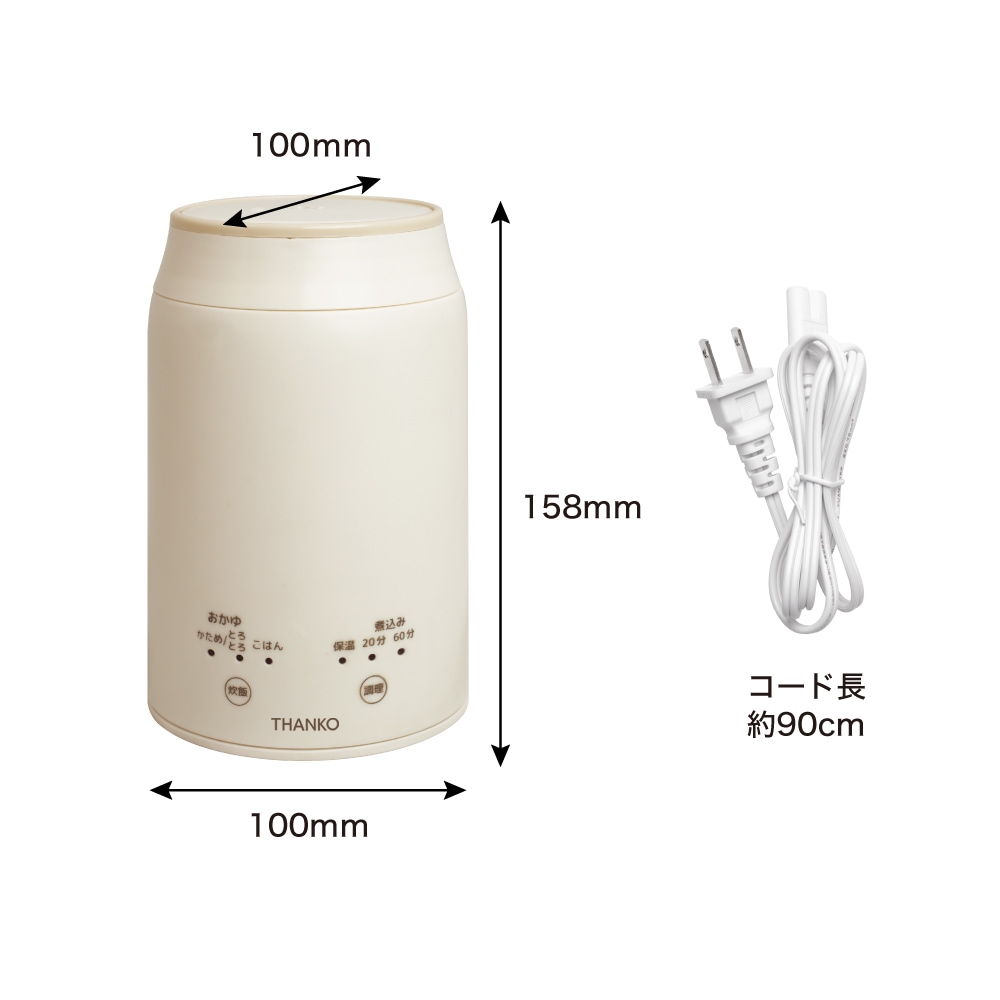 | モード | おかゆ(かため、とろとろ)、 ごはん、保温、煮込み(20分、60分) |