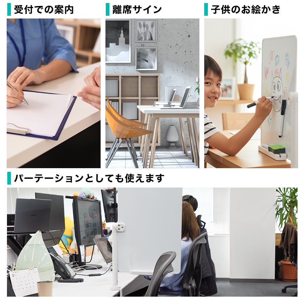 個人のデスクで活用する以外にも、受付での案内、Web会議でのカンペやタスク管理に。