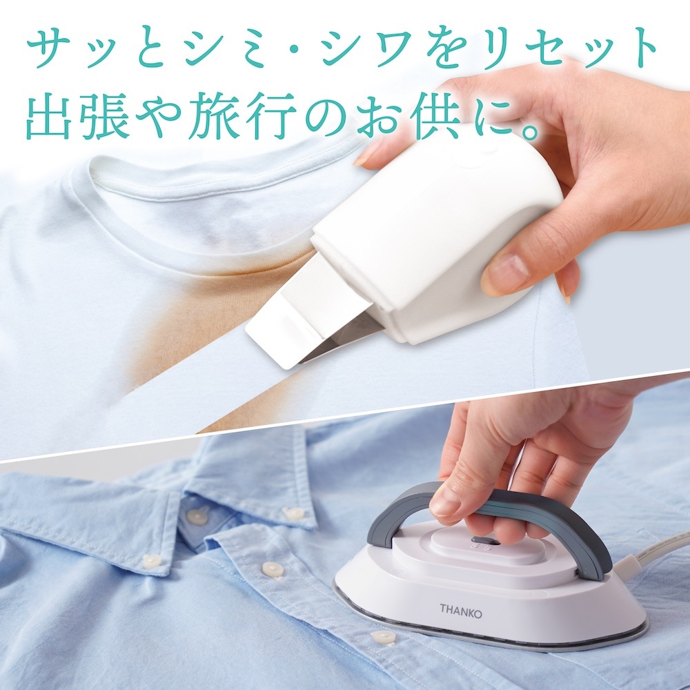 出張先や旅行先で、服についたシミ・シワをサッとリセットできます。